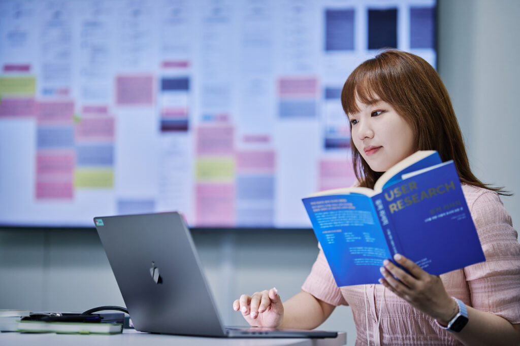 저는 사용자를 관찰하고 분석하는 데 시간을 많이 쏟는 편이에요. 가설을 세우고 여러 방법론을 사용하여 논리부터 설계해요. 한 줄로 설명하기 아쉬울 정도로, 검증하고 또 검증하는 과정을 반복한답니다. UT, Survey 또는 데이터 분석을 통해 페인포인트를 확인하기도 하지만, 신상품을 기획해야 할 때는 심층인터뷰와 FGI를 통해 잠재된 니즈를 발굴하고 있습니다. 질문지 작성과 인터뷰 모더레이팅도 직접 진행하다보니, 기획에 꼭 필요한 인사이트를 애자일하게 찾아내는 편이에요.