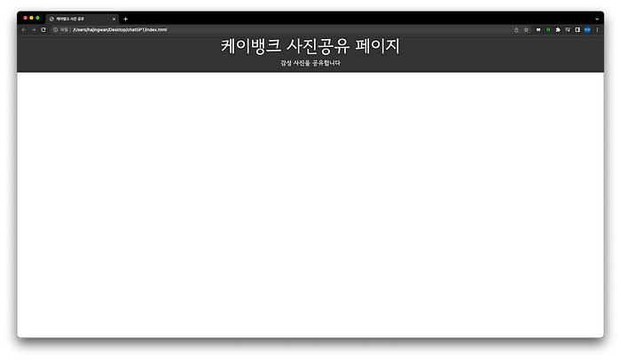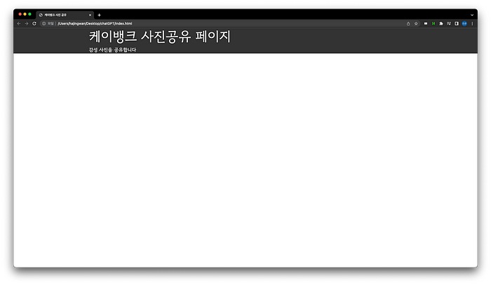 <h1 class=”display-4 text-light”>케이뱅크 사진공유 페이지</h1>