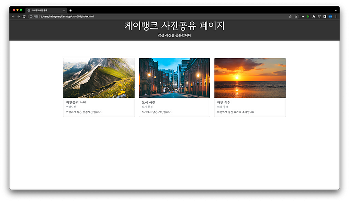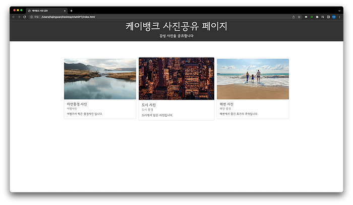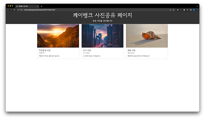 지금까지 ChatGPT를 통해 간단한 웹페이지를 만들어 봤습니다.