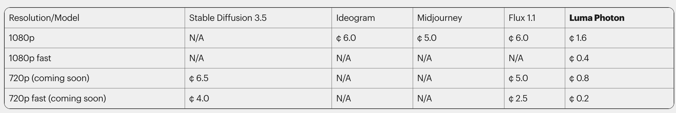 API 출시 전까지 대안으로 사용할만한 모델들을 살펴보던 중 공식적으로 API를 제공하고 text2img뿐만 아니라 img2img기능도 제공하는 Luma.AI의 Photon모델을 찾게 되었습니다. Luma.AI의 경우 생각보다 가격이 저렴하고, Credit이 남으면 비디오(Ray)도 생성해볼 수 있기 때문에 좋은 대안이라 생각이 되었습니다. 우선은 해당 모델로 진행하고 추후에 OpenAI API(gpt-image-1) 출시 시 대체하기로 결정하였습니다. (현재는 gpt-image-1이 적용된 상태입니다.)
