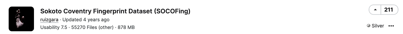 다음은 지문을 찾아야 합니다. fingerprint로 검색해보니 마침 SOCOFing이라는 좋은 데이터셋을 구할 수 있었습니다.