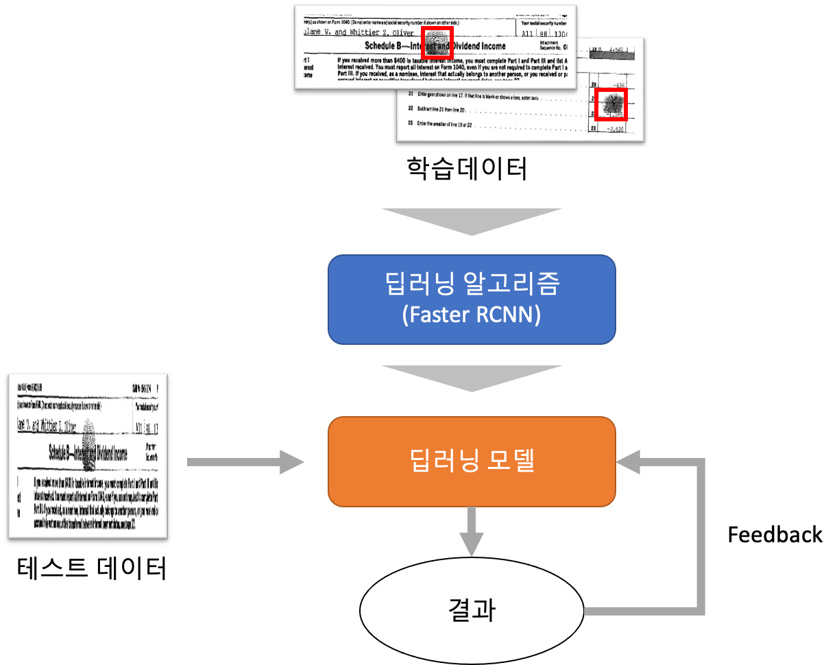 이제 문서와 지문 2가지 데이터를 구했으니 실제 비즈니스에 가까운 데이터로 합성해야 합니다. 문서에 Random한 위치로 지문을 합성하여 실제에 가까운 ‘지문 찍힌 문서’를 합성 해낼 수 있었습니다. 더욱이 좋은 것은 합성할때 위치정보를 알수 있으니 사람이 직접 Annotation 하는 과정 없이 알고리즘에 학습시키기 적합한 형태의 데이터 확보가 가능했습니다.