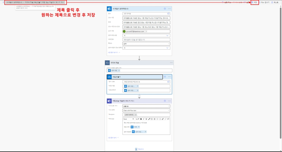 13) 1~12번의 작업 완료 후 왼쪽 상단의 '새 메일이 ...' 클릭 후 원하는 제목으로 수정 > 오른쪽 부분에서 저장 클릭