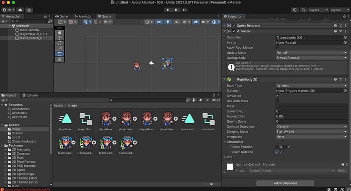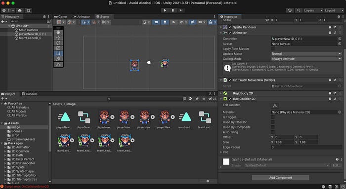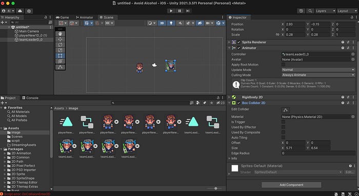 똑같은 방식으로 술래를 드래그앤드랍해서 아래처럼 만들자(애니메이션으로)