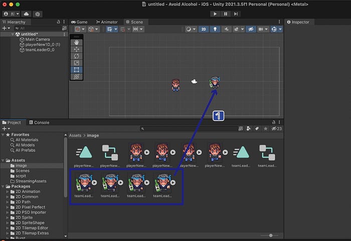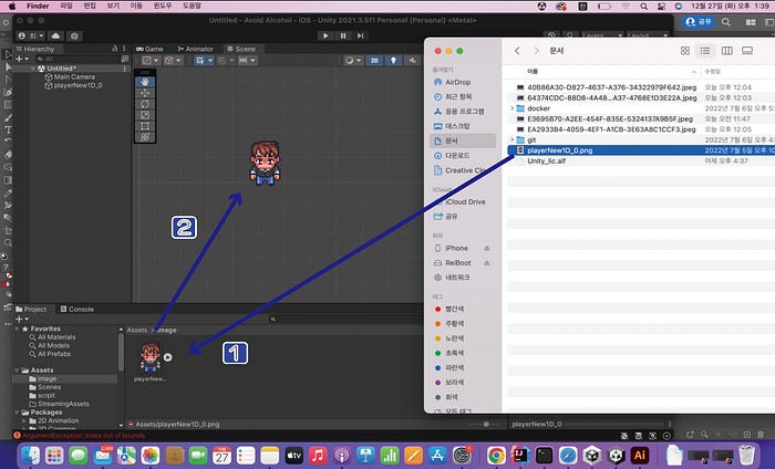 이미지를 아래 처럼 드래그 앤 드랍해서 빈 Scene에 개체를 올리고
