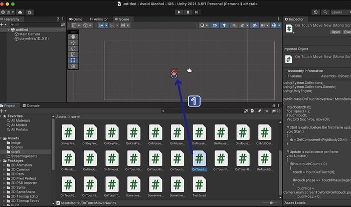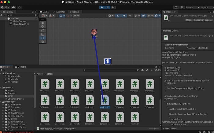 터치를 했을 때 그 방향으로 이동하도록 스크립트를 코딩하자.