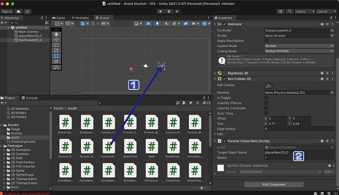 그런데 술래한테 잡혔을 때 게임이 끝나야 하는데 이벤트 처리를 어떻게 해야되는지의 문제가 남아있다. Collider Component를 사용하면 된다.