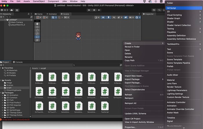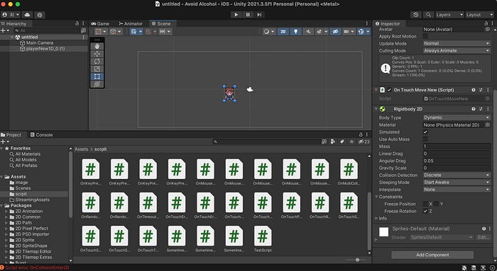 개체에 스크립트를 적용하기 위해 아래 처럼 스크립트를 드래그앤드랍하자