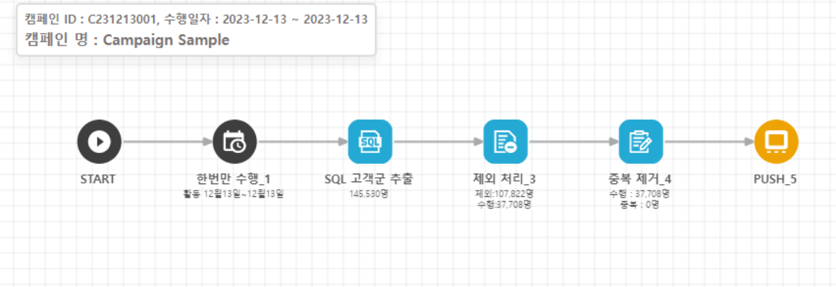 물론 이 프로세스를 요청건별로 개발해서 발송할 수도 있겠지만, 이렇게 하면 개발기간과 인력이 필요하고 무엇보다 마케팅이 필요한 타이밍을 놓칠 수 있겠죠. 또 마케팅 성과와 고객의 성향에 따라 문구와 대상이 계속해서 변화할 수도 있어서 고정된 프로그램으로 개발하기엔 비효율적입니다. CRM 시스템에서는 이 각각의 단계를 UI상에서 컴포넌트를 통해 마케터가 쉽게 설계할 수 있습니다. 별도의 개발이 없이 플랫폼 위에서 마케터가 자유롭게 설계를 할 수 있고 변주를 할 수 있습니다.