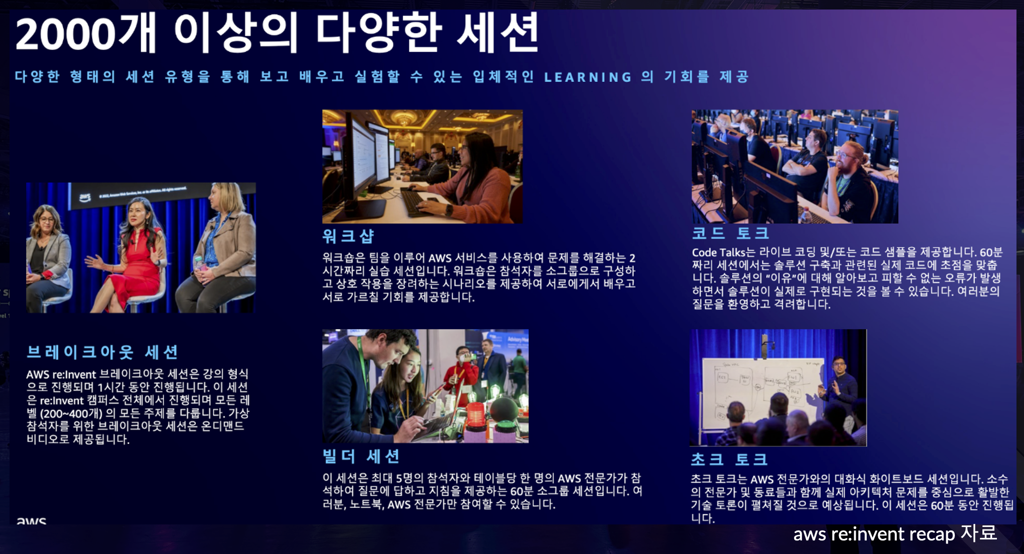 2. 세미나 - 고객이 발표하는 세션, aws가 직접하는 세션, aws 파트너사가 하는 세션