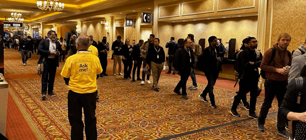 그래서 사이트에서 사전에 듣고자 하는 세션을 미리 체크하고, 동선을 잘 고려해야 최대한 많은 세미나를 즐길 수 있습니다. 호텔 하나가 거의 하남스타필드만한 크기라서 호텔 하나를 다 둘러보기도 끝이 없을 정도인데요 그래서 예를 들어 오전에 서로 붙어있는 시저스포럼과 베네시안에서 시간을 보내고, 셔틀이나 우버로 멀리 있는 만달레이로 이동하는 형태로 스케쥴을 짰습니다. 셔틀을 타러 가는 거리도 꽤 멀 수 있어서 동행이 있다면 우버를 타는게 시간과 체력을 절약할 수 있는 방법입니다. 셔틀은 대기시간도 있고 좀 돌아가는게 있어서… 우버로 10분이면 갈 거리를 40분 걸리기도 했습니다. 시간이 촉박하거나 이동하는게 부담이라면 큰 세미나나 세션은 원격으로 생중계 해주는 경우도 있으니 참고하세요!