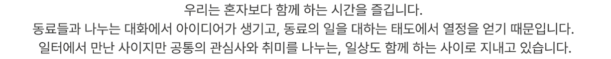 대조되는 두 행동양식을 취소선이 그어진 단어와 강조된 단어로 비교해 우리가 지향할 문화를 설명합니다.
